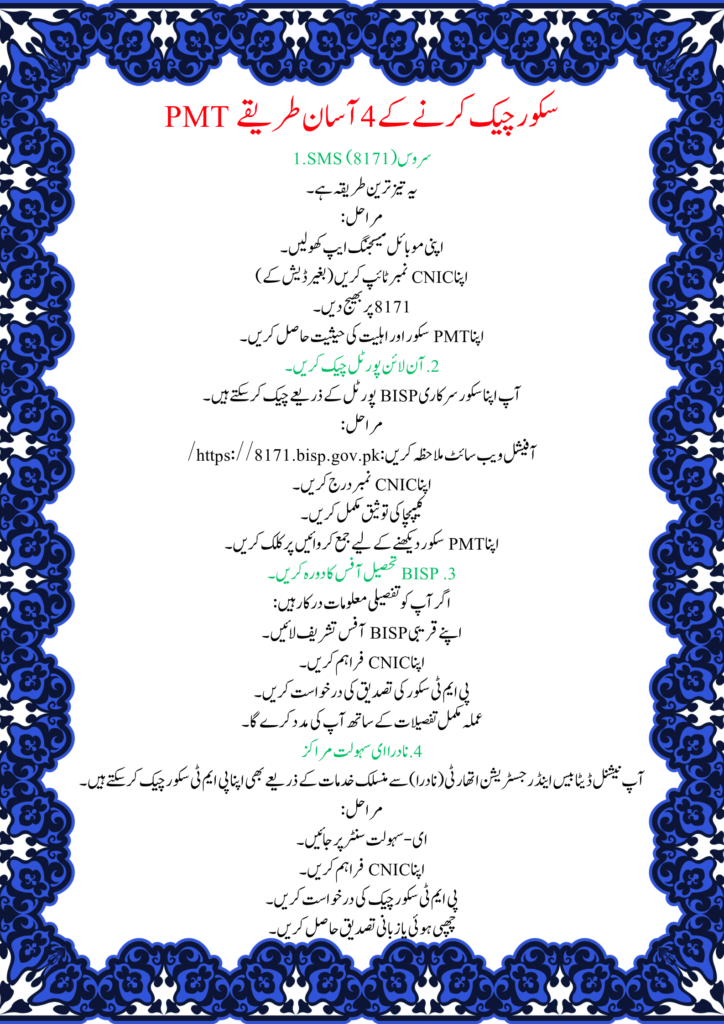 You can also check your PMT score through National Database and Registration Authority (NADRA) linked services.